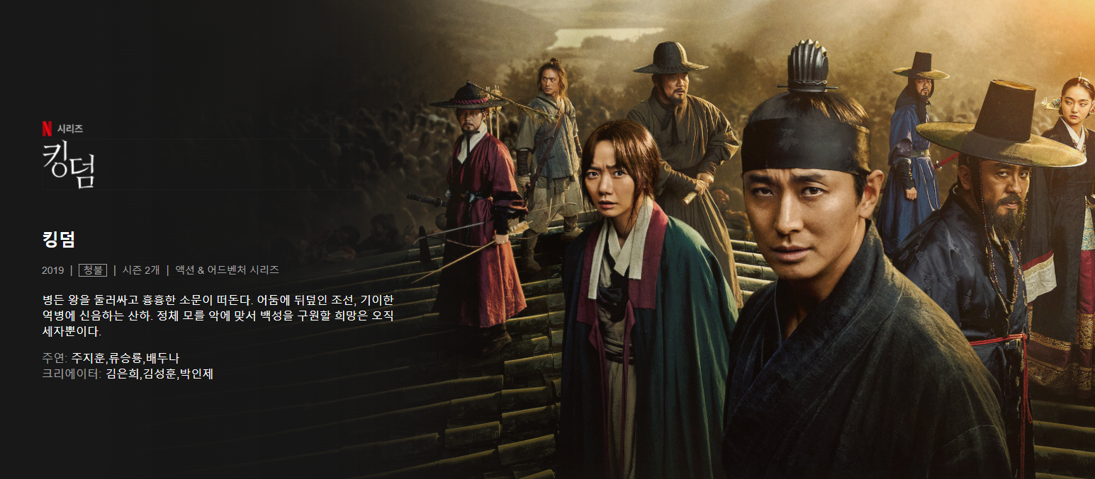 다만 킹덤 시즌1이 워낙 재밌어서 시즌2는 개인적으로 살짝 아쉬웠습니다ㅠㅠ