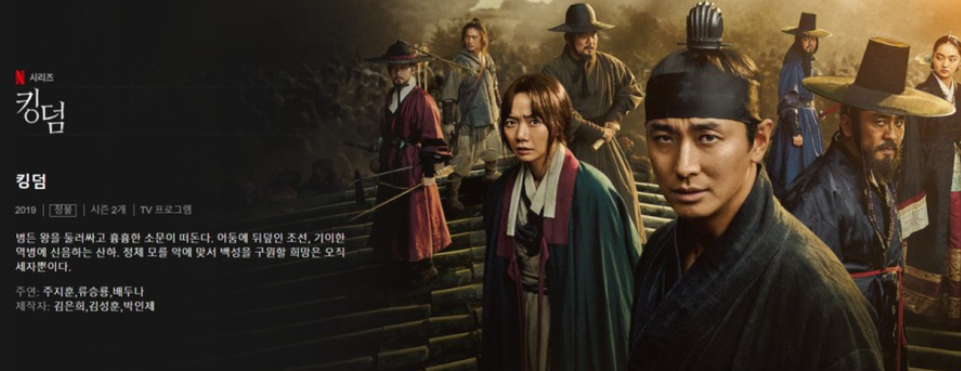 전 킹덤 시즌1이 워킹데드 이후 좀비물 드라마 처음이었는데 신선하고 재밌었습니다.